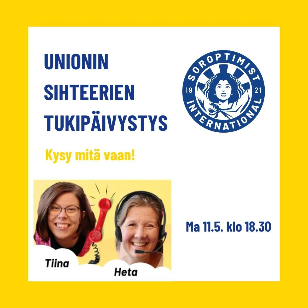 Heta ja Tiina päivystävät puolen tunnin ajan, jolloin voit tulla vapaasti linjoille kysymään mitä tahansa soroptimistitoimintaan liittyvää.